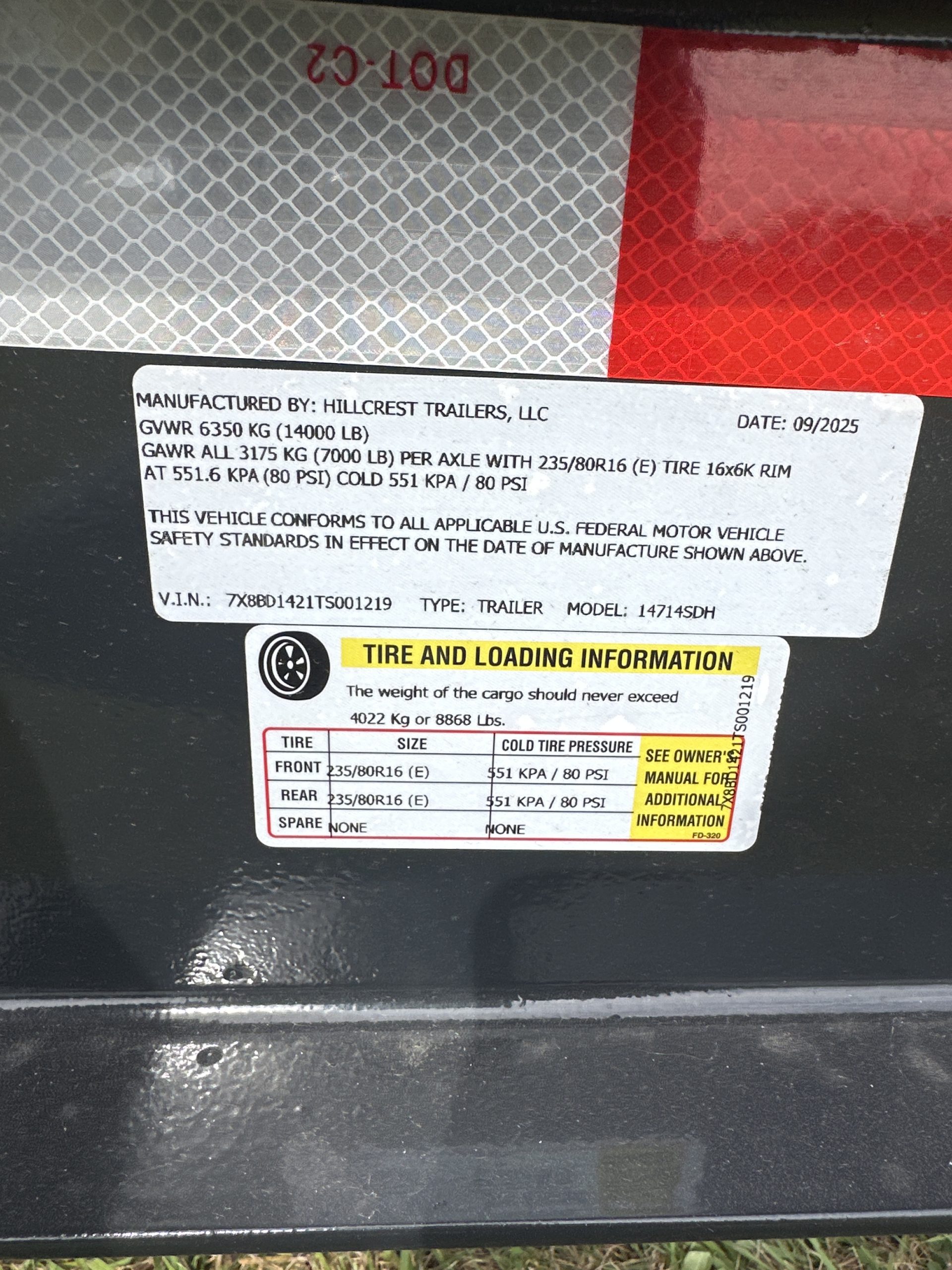 | Axles | Dual 7,000 lb rated axles (or equivalent spec) |